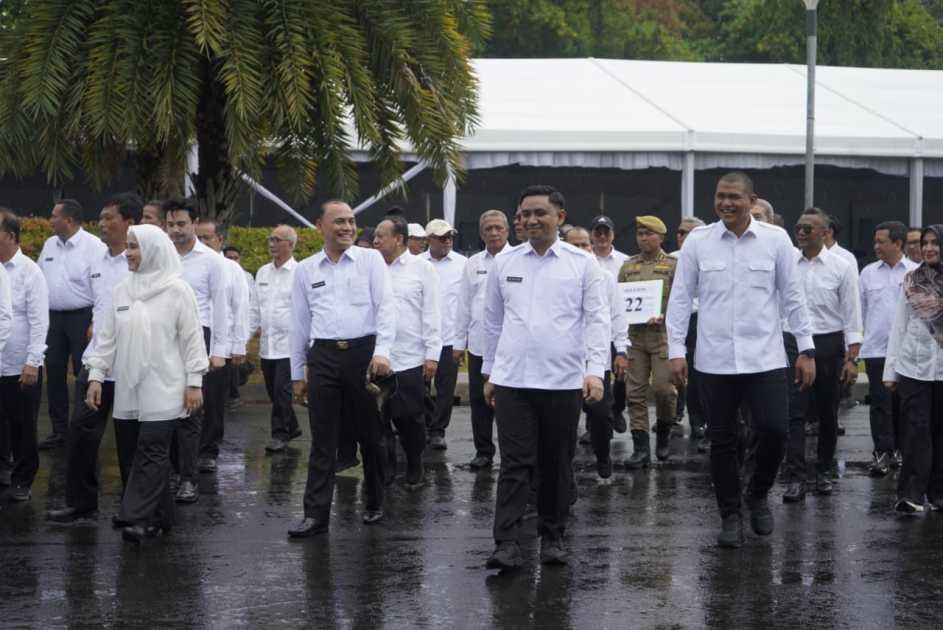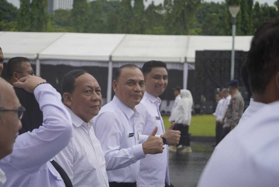Terpilih, H. Bambang Iman Santoso dan Dr. M. Rafieq Adi Pradana, dengan penuh semangat mengikuti gladi resik (GR) pelantikan kepala daerah di Istana Negara, Jakarta, Rabu (19/2/2025).
