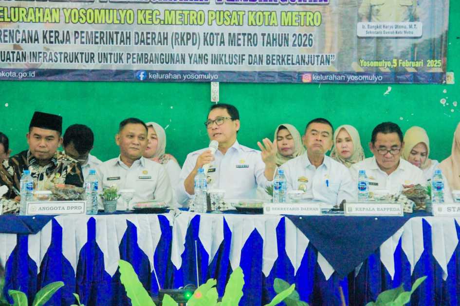 Tema yang diambil untuk Musrenbang tahun 2025 ini yaitu Penguatan Infrastruktur untuk pembangunan yang inklusif dan berkelanjutan Tema ini dipilih untuk memperkuat komitmen Pemerintah Kota Metro dalam mewujudkan pembangunan yang berkelanjutan dan inklusif.